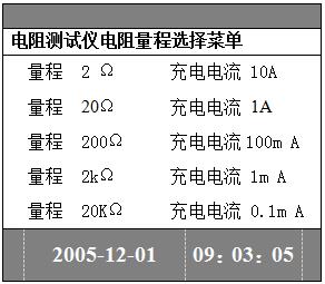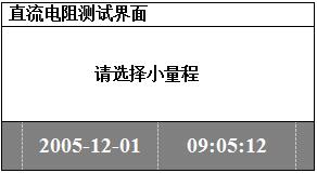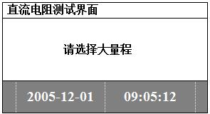 通過面板上的鍵盤選擇“電阻測試”選項,點擊確定鍵,進入檔位選擇菜單,進入下面的顯示: