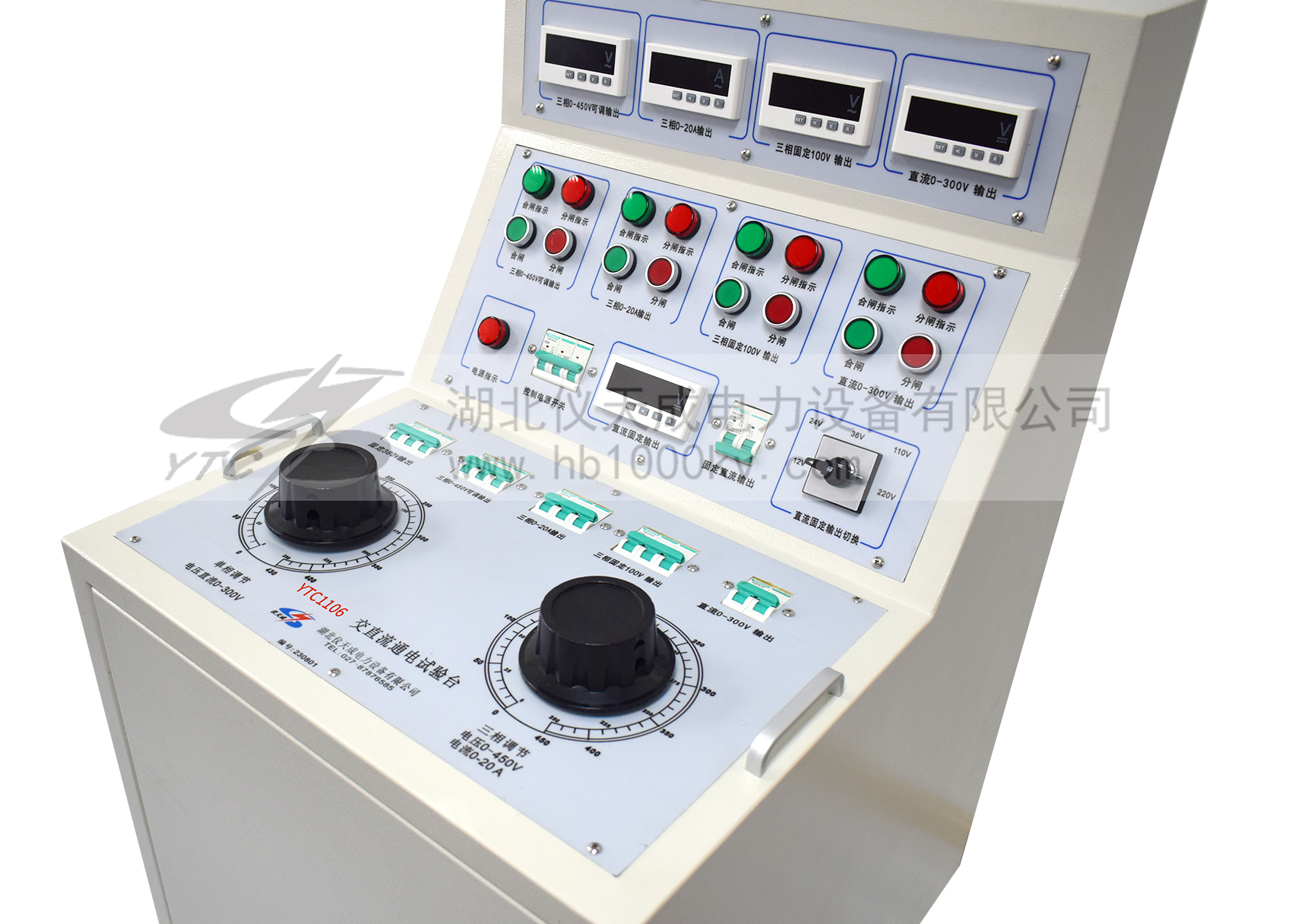 1、三相AC100V輸出(固定值) 一組 2、三相AC 0 - 50A輸出(〈10V,可調(diào)值) 一組 3、交流操作電壓輸出 AC 0 – 420V,220V時,電流小于10A 一組 4、直流操作電壓輸出24V.36Ⅴ.48Ⅴ.110Ⅴ.220Ⅴ 5、單相AC220V輸出(固定值,插座形式) 二組 6、三相AC380V輸出(固定值,接線柱) 二組 |